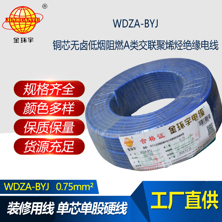 WDZA-BYJ金環(huán)宇電線 WDZA-BYJ 0.75 低煙無鹵阻燃A級家裝電線 硬線