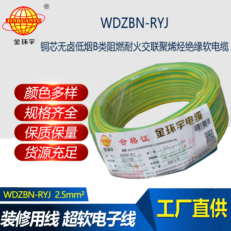 WDZBN-RYJ電纜:全稱B級阻燃耐火低煙無鹵交聯(lián)聚烯烴絕緣布電線,執(zhí)行標(biāo)準(zhǔn)GB/T19666-2005。