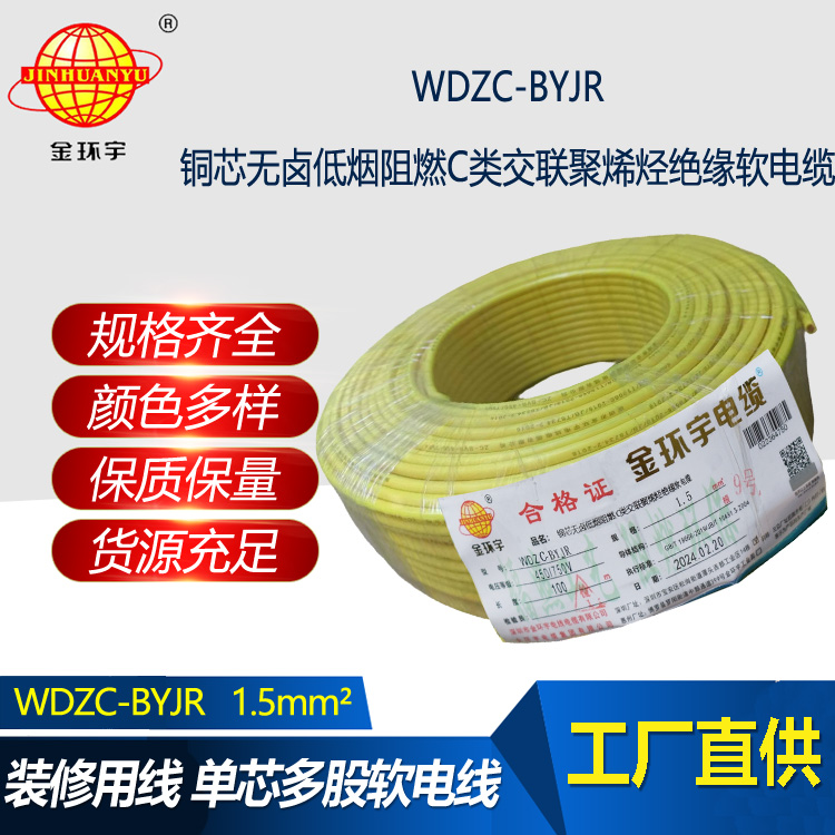 WDZC-BYJR指低煙無鹵阻燃聚烯烴護套,交聯(lián)聚乙烯絕緣電線。WDZC分別是無鹵、低煙、C級阻燃、聚烯烴,B指電線,YJ是交聯(lián)聚乙烯絕緣。
